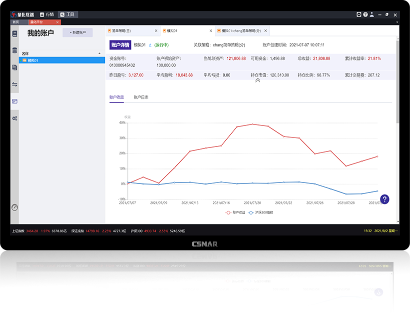 顺利获得历史数据的回测,验证量化策略的可行性,支持股票、基金、债券、期货、期权日频和分钟频的策略回测。